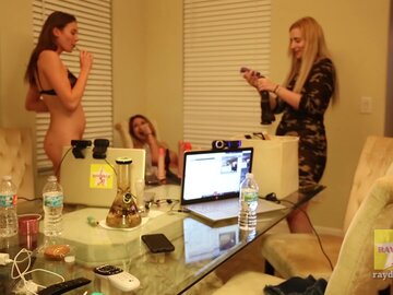 Tina Marie,Layla Tyler,& Kennedy Kain SheGirl Girl Girl strap on lesbian Live sex show.